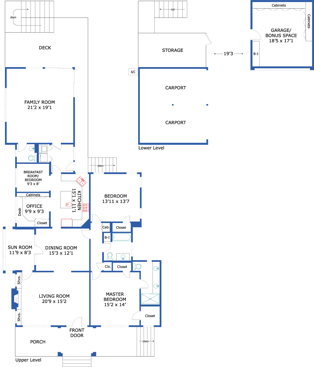 Off the back of the home is a raised deck, with a retractable awning, that overlooks the entertainer’s patio and shaded rear yard. The stacked stone terrace is perfect for quiet dinners under the stars or for celebrating with friends. The gardens have been professionally landscaped and include old growth trees, several fruit varietals, as well as hand laid pathways that lead you from one inviting area to the next. Other spaces include a double carport as well as a two-car garage that has been converted to a pristinely finished bonus room with a vaulted ceiling, ample storage and a custom surfaced floor.